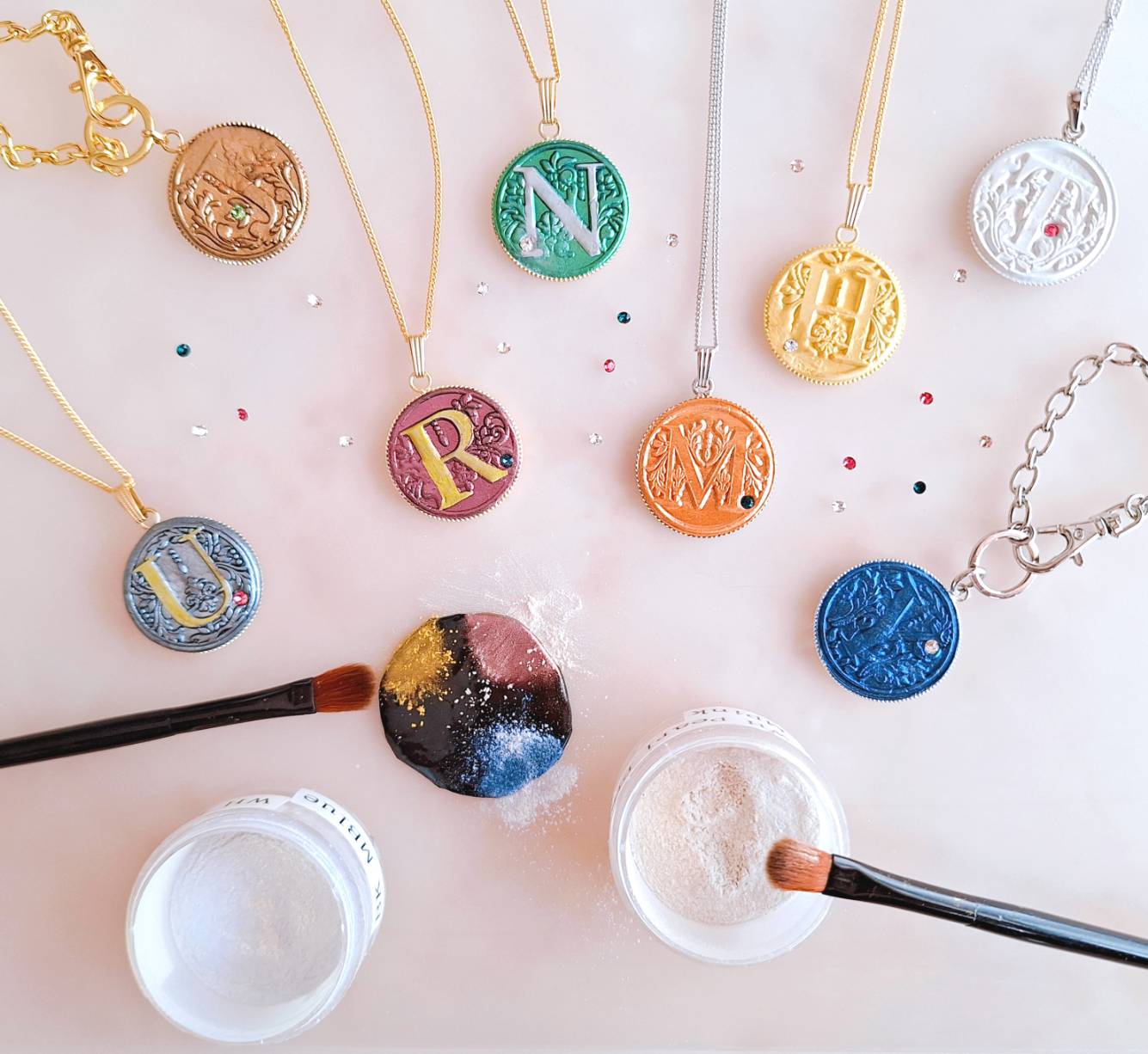 高級感のあるオンリー1のアクセサリーの販売や、パウダーとスワロフスキーで作るイニシャルペンダントの体験講座に、是非お越しください。